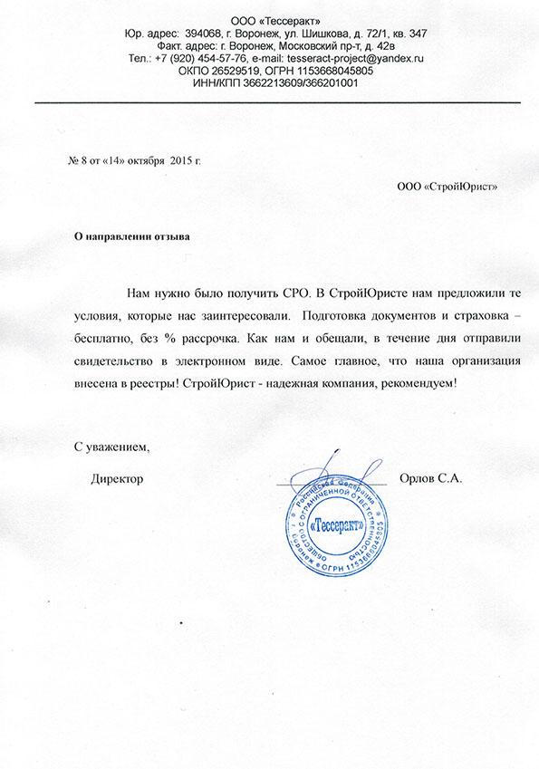 Отзывы клиентов "СтройЮрист" по вступлению в СРО в Южно-Сахалинске