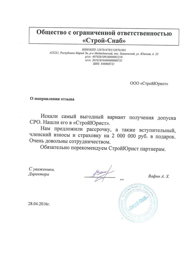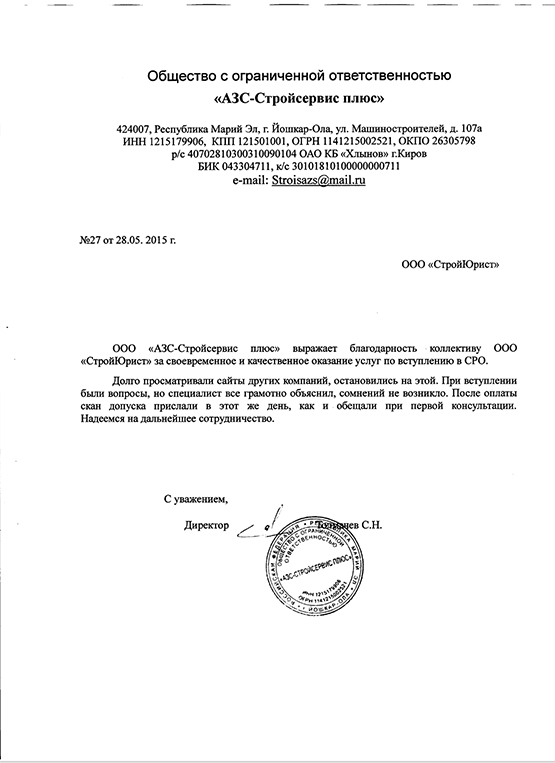 Отзывы клиентов "СтройЮрист" по вступлению в СРО в Южно-Сахалинске