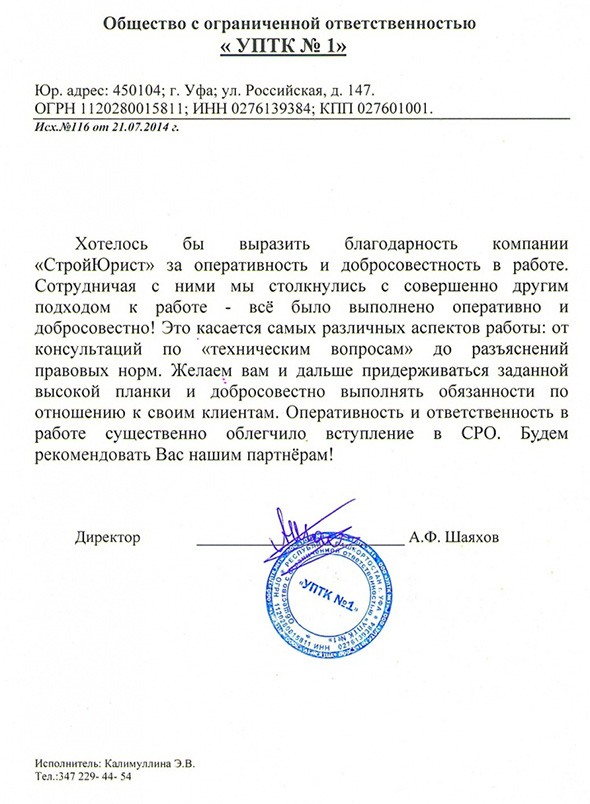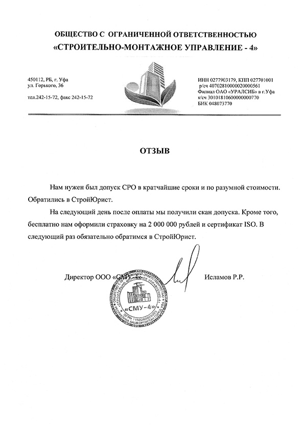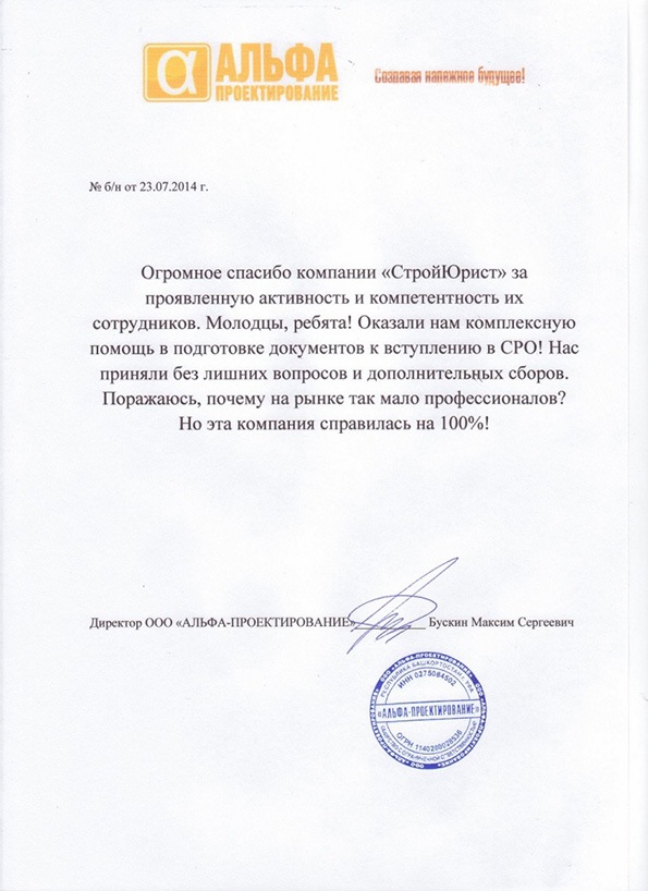 Отзывы клиентов "СтройЮрист" по вступлению в СРО в Южно-Сахалинске
